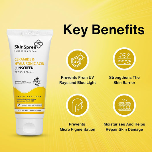 Skinspree Sunscreen SPF 50 For Oily/Dry/Combination Skin | PA++++ for UVA, UVB and Blue Light Protection | Non Comedogenic | No White Cast | Lightweight Cream Formula For Men And Women | 50gm